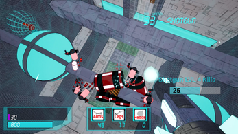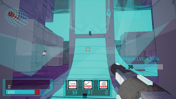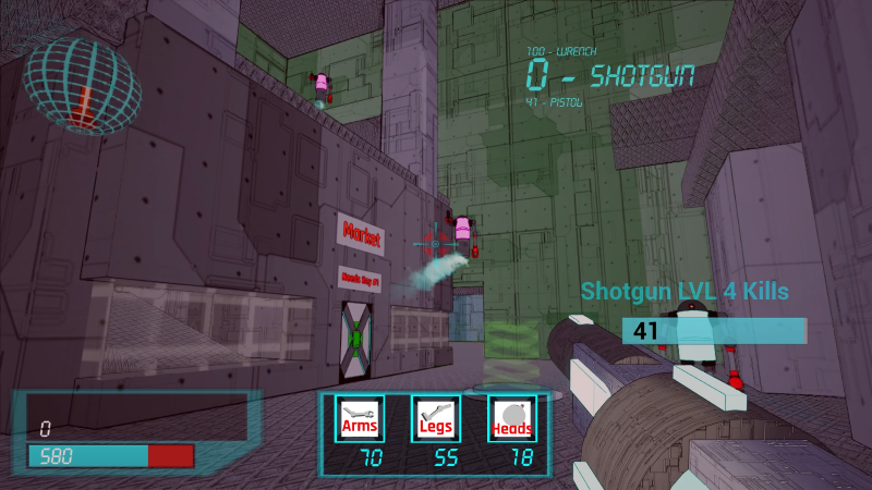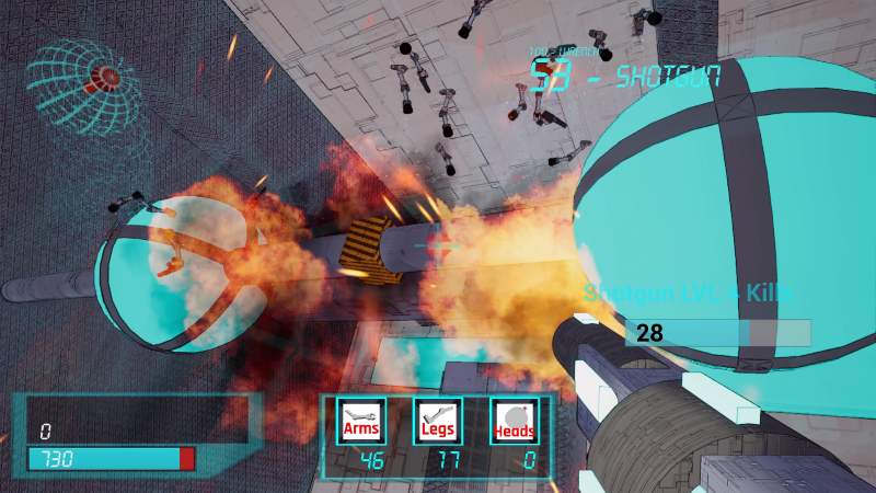 This is an FPS where you kill robots and collect their parts to advance. You need to shoot the correct places on their bodies to get the parts, so aim is key. You also need to collect new weapons to be able to harvest different parts. You can spend the parts to open up new parts of the level, and also to upgrade your weapons. All of this is happening on a space station where you can shift gravity and walk on walls.